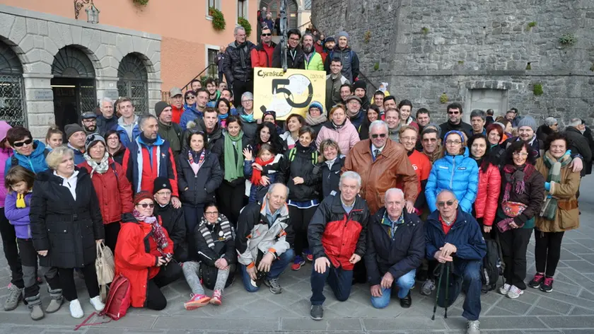 MORTEGLIANO. Nei paesi le iniziative a volte nascono tra il generale entusiasmo e durano poco, ma a Mortegliano una resiste da 50 anni: è la marcia di 40 chilometri fino a Castelmonte la prima domenica di dicembre. Questa volta con record di partecipanti: in 83 sono partiti alle 4 di mattina per essere al santuario alla messa delle 11.30. Complice forse l’occasione del mezzo secolo, per il compaesano Agostino Vecchiutti, cofondatore e da sempre riferimento per la gita, è stata una soddisfazione. Per l’anniversario del primo mezzo secolo della bella tradizione, gli amici non hanno mancato di ringraziarlo con una targa a fine gita.