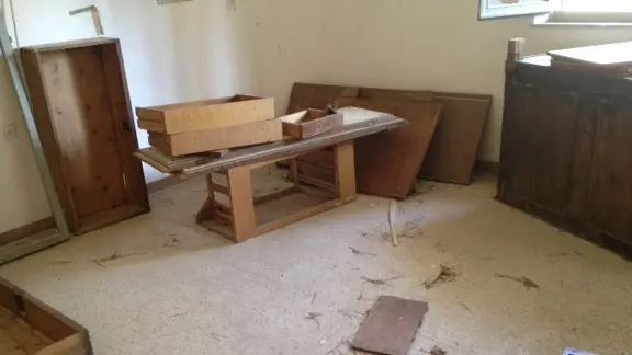 Di fronte al cancello c’è la colonia Bruno e Paola Mari, della diocesi di Vittorio Veneto, ancora attiva. Un paragone risulta avvilente. Alla decadente colonia di Pordenone la chiusura dell’ingresso principale è assicurata attraverso una catena chiusa da un lucchetto. Di fronte c’è una piccola struttura, una specie di dependance riconvertita a deposito attrezzi.