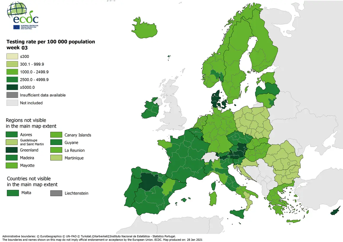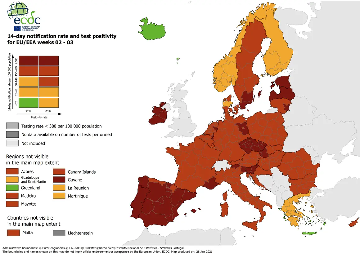 UDINE. Fino a pochi giorni fa le regioni italiane definite “rosso scuro” secondo i parametri dell’Unione europea erano Friuli Venezia Giulia, Veneto ed Emilia Romagna, oltre alla provincia autonoma di Bolzano. Ora, però, spariscono Emilia Romagna e Veneto. È quanto risulta nella mappa dei contagi da Covid-19 appena pubblicata dal Centro europeo per la prevenzione e il controllo delle malattie (Ecdc), aggiornata al 28 gennaio.