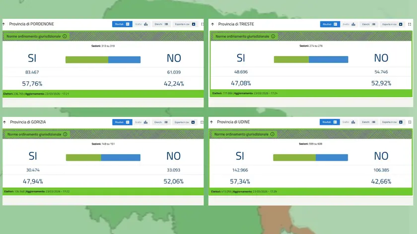 Il caso più clamoroso è la provincia di Udine, dove il Sì trionfa nettamente con il 57,26% ma nel capoluogo invece prevale il No con il 52,27