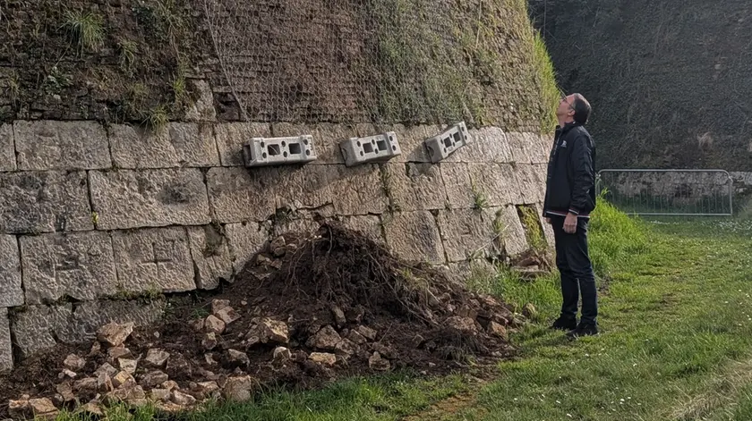 Il crollo è avvenuto nella zona tra borgo Cividale e baluardo Garzoni. L’amministrazione: «Per intervenire sull’intera cinta servirebbero 30 milioni»