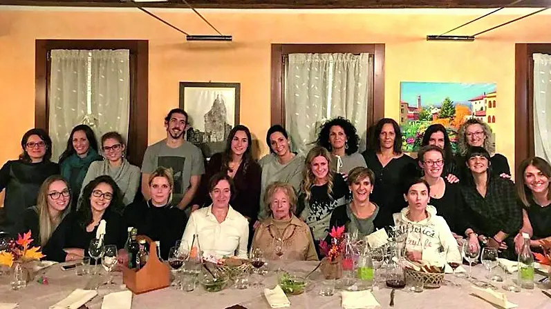Lucilla Varisco, 98 anni, al centro della foto assieme ad alcuni ex allievi