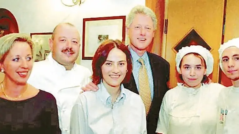 Bill Clinton con una parte dello staff del ristorante nel 1999