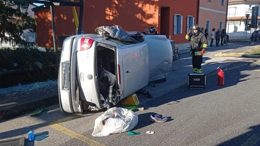 Bagnaria Arsa, auto si ribalta contro la pensilina delle corriere: ferito il conducente