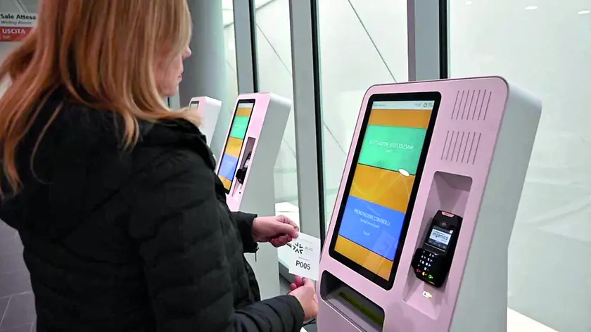I totem digitali per l’accettazione delle visite (foto Brisotto / Petrussi)