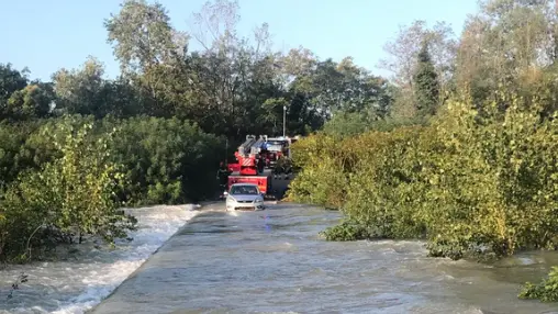 Bloccato in auto sul guado del Malina in piena, salvato da pompieri e carabinieri