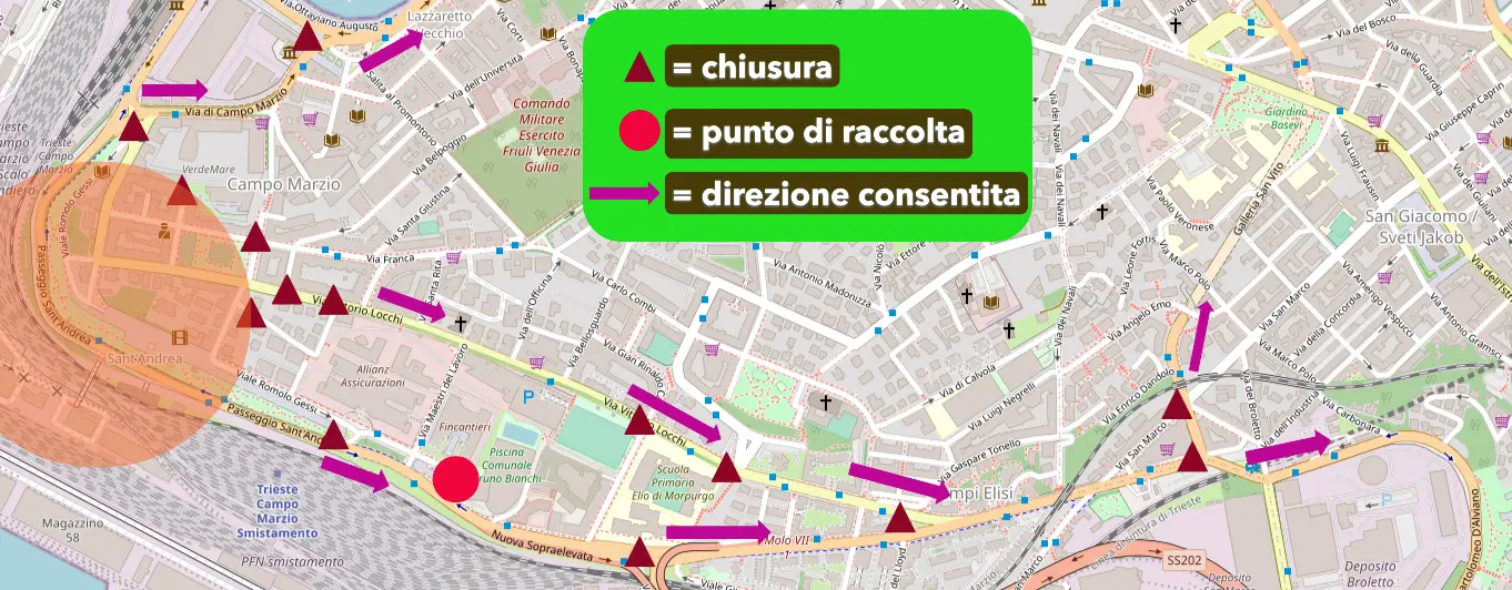 Zona rossa sigillata per il Bomba day a Trieste, da Campo Marzio si potrà solo uscire: tutte le modifiche alla viabilità
