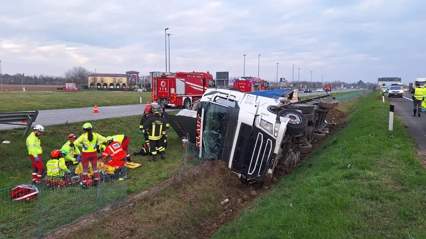 Un camion si è ribaltato nel pomeriggio di martedì 24 febbraio mentre percorreva l’autostrada A4, all'altezza di Aiello del Friuli. L'incidente è avvenuto intorno alle 16.30, in corrispondenza del Palmanova Designer Village.