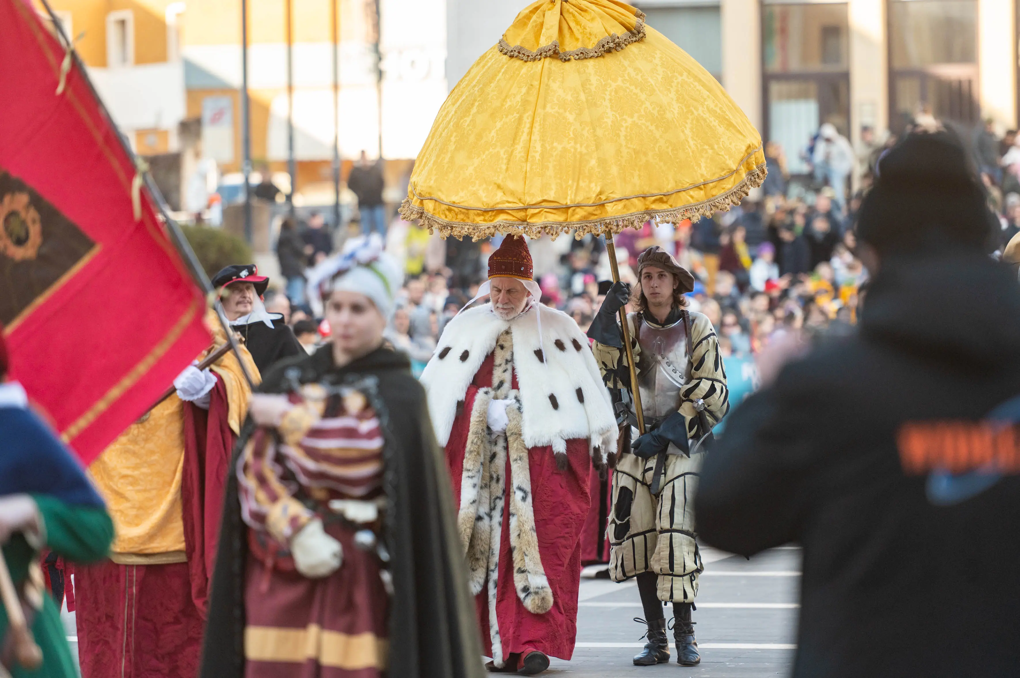 Dopo l’introduzione delle majorettes di Prata, c’è stato l’arrivo del primo gruppo: come da tradizione, a dare il via alla manifestazione è stata la Filarmonica di Pordenone. Il secondo gruppo è stato un tuffo nel passato e nei fasti della Serenissima con la delegazione storica del Carnevale di Venezia e la sfilata del Doge accompagnato dai tamburi degli araldi e da altri personaggi che hanno dato vita alla rievocazione delle battaglie a colpi di spada: tutti gli abiti, le armi e le armature dei figuranti sono originali della Repubblica Serenissima.