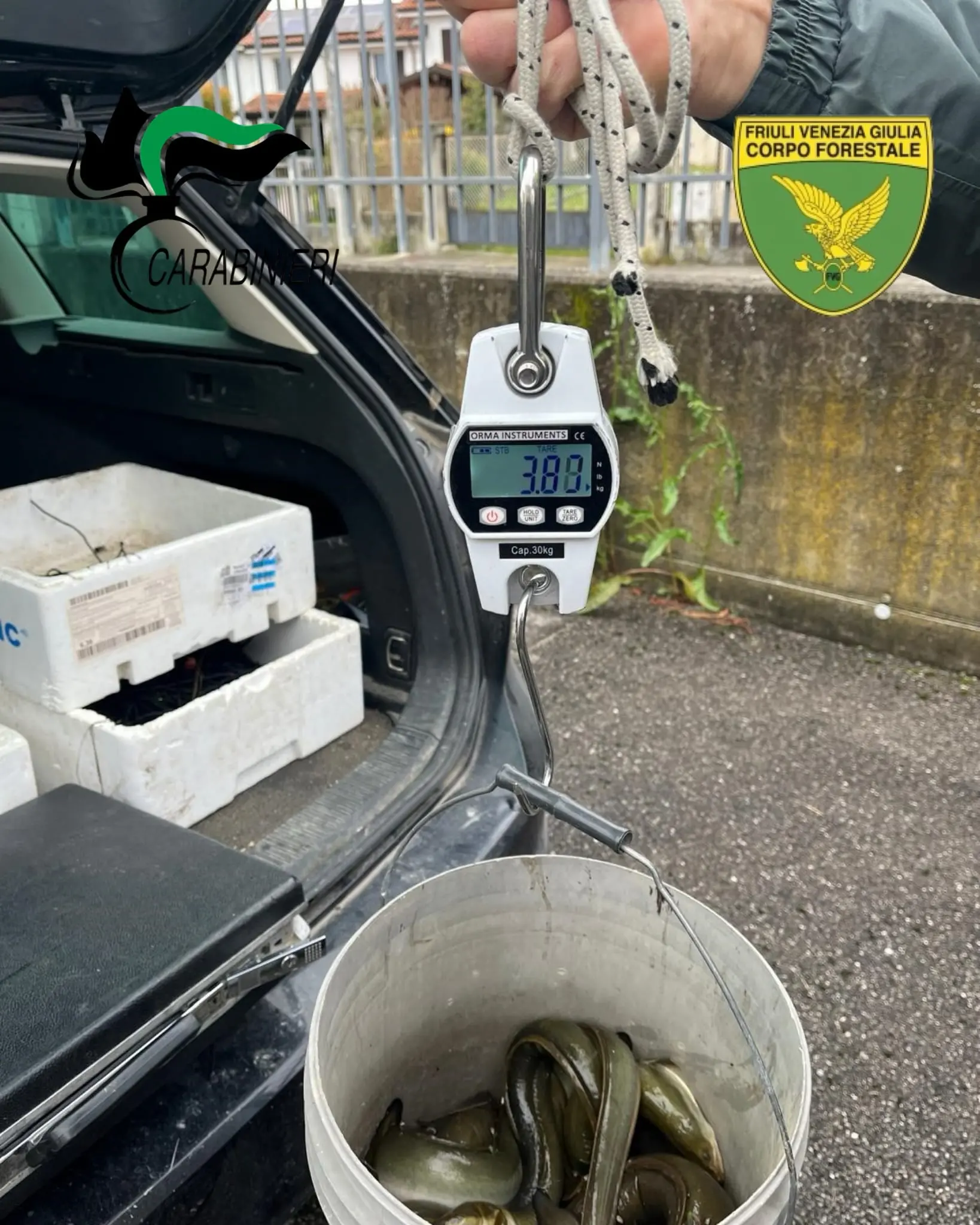 Il Corpo forestale regionale e i carabinieri forestali del Nucleo Cites di Trieste sono intervenuti nell’area di confluenza tra i fiumi Corno e Ausa per interrompere e reprimere l’attività di cattura da parte di un pescatore di esemplari di anguilla europea (Anguilla anguilla L.).