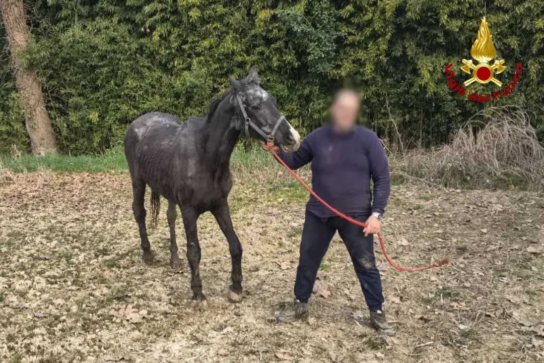 Giunti sul posto, i pompieri hanno trovato i proprietari dell’equino, che hanno indicato il punto in cui l’anziano cavallo era disteso nel fango, visibilmente stremato.