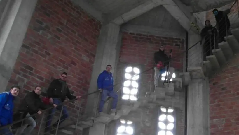 A salire “sul tetto del Friuli” un nutrito gruppo dell’associazione “Scampanotadôrs Furlans Gino Ermacora” che ha la sede e un castello di campane per i corsi a Zuglio, pieve di San Pietro. «Giornata indimenticabile – si legge sulla pagina Facebook dell’associazione –: dopo anni siamo saliti sul campanile più alto d’Italia!». È pure su YouTube la «scampanottata meravigliosa» come la definiscono Gianmarco Pitton, Daniele Zatti, Nicola Salvador, David GB del Riccio, Matteo Di Bert, Matteo Paiani, Lorenzo Miotto, Renato Miotti (presidente degli Scampanotadôrs), Renato Pitton, Gianni Rivilli, Enea Zatti. Vengono da diversi paesi (questi da Rivignano, Lestizza, Coderno, Feletto, Tavagnacco, Cassacco) e a tutto il Friuli l’associazione si propone, per tenere viva una tradizione che, dovunque si fosse un campanile, era assicurata da un’arte trasmessa da una generazione all’altra.