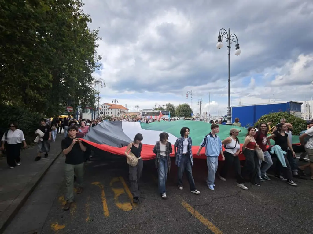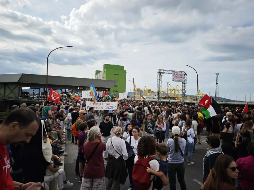 Migliaia di persone sono scese in piazza a Trieste per protestare contro le azioni militari israeliane nella Striscia di Gaza, rispondendo trasversalmente all’appello lanciato dai sindacati di base per lo sciopero generale indetto per la giornata odierna, lunedì 22 settembre, come in altre città d’Italia. Lo slogan è quello lanciato dai portuali di Genova “blocchiamo tutto” in sostegno alla popolazione di Gaza.