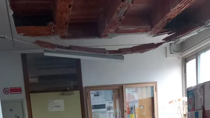 Il controsoffitto crollato nell’ex sede della VI Circoscrizione