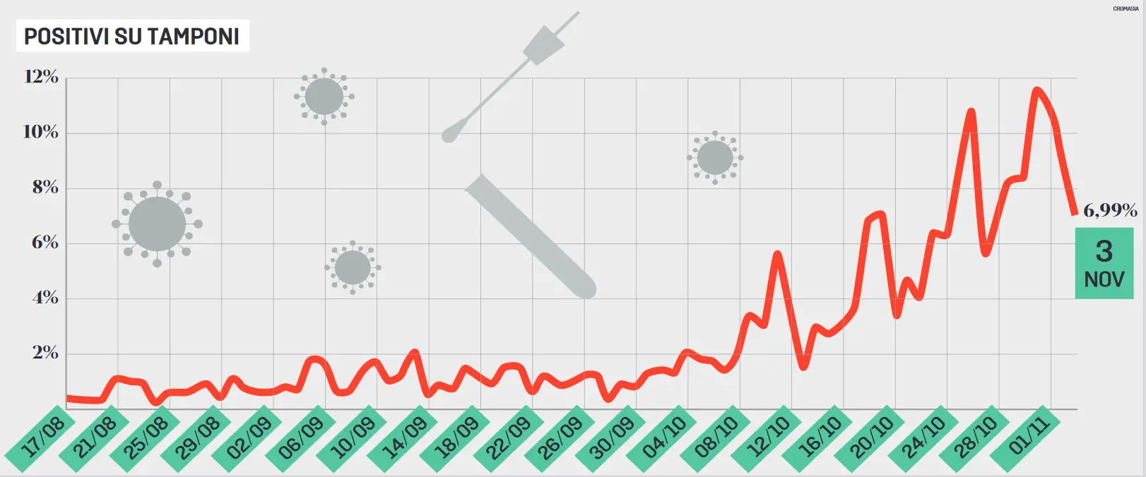 «Questo è un dato che fa ben sperare – sottolinea – però ho notato che anche nelle scorse settimane durante i giorni di lunedì e martedì si assisteva a questo calo. La percentuale dei positivi si rialzava però nella seconda parte della settimana. Questo può dipendere dal tipo di soggetti che vengono sottoposti ai tamponi. Lo screening è forse differente. Aspettiamo dunque i prossimi giorni per vedere se la curva continuerà a scendere come ci auguriamo o se si rialzerà come è avvenuto già a ottobre».