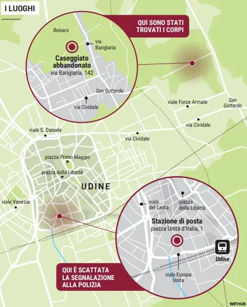 Nascosta tra i campi della periferia est di Udine, in quel tratto di Beivars dove la città si sfilaccia in sentieri sterrati e reti divelte, c’è una palazzina che da anni sembra non interessare più a nessuno, se non a chi una casa non ce l’ha ed è in cerca di un riparo. Le finestre spalancate, le pareti umide, i varchi aperti di forza nella recinzione raccontano una storia di abbandono che lunedì si è trasformata in dramma. È qui, infatti, all’altezza del civico 142 di via Bariglaria, che gli agenti della Squadra Mobile e delle Volanti hanno trovato i corpi senza vita di due uomini stranieri che avevano cercato riparo dal freddo invernale.