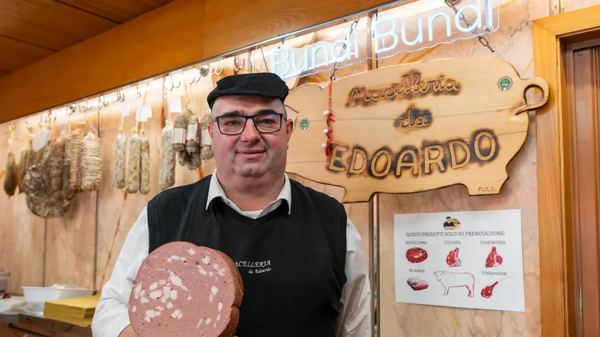 Nel frattempo, la creatività non si ferma al banco. Nascono hamburger a forma di stella – omaggio a Palmanova – cuori per San Valentino e il “cubotto”, il più venduto. In testa, la sua immancabile coppola: nera classica o a quadretti bianconeri, da tifoso dell’Udinese. La carriera di Edoardo è iniziata presto: dopo le medie, il lavoro in macelleria, poi salumifici, supermercati («ma lì eri un numero, sono andato via»), fino all’attività in proprio dal 2006. Oggi guarda avanti: in ottobre festeggerà vent’anni da imprenditore. E intanto continua a salutare così: “Bundì bundì!” e a congedarsi con un “Mandi mandi”. Perché anche nell’era dei social, certe tradizioni non si toccano.