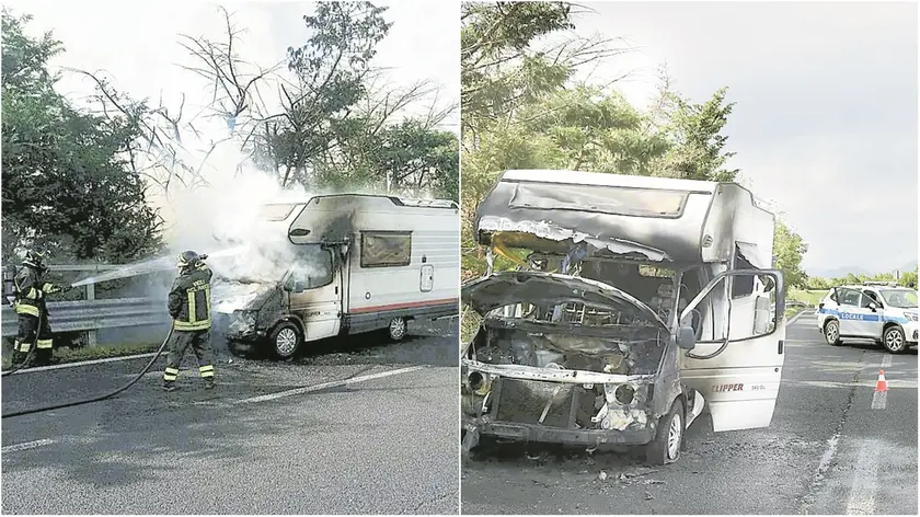 Fa un giro di controllo e il mezzo prende fuoco, distrutto un camper