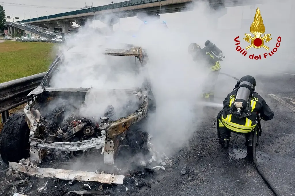 All'arrivo dei vigili del fuoco la vettura era completamente avvolta dalle fiamme, che i soccorritori hanno provveduto a estinguere. Il conducente, unico occupante del mezzo, accortosi dell’incendio mentre era alla guida, ha arrestato il veicolo ed è sceso chiamando i soccorsi, non senza procurarsi una ferita a un braccio a causa della rottura di un vetro. L’uomo è stato medicato sul posto dal personale di un’ambulanza in transito lungo via Maestri del Lavoro.