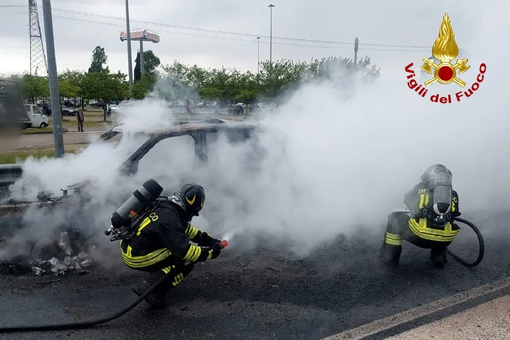 Fiamme sulla strada. È scattato intorno alle 17.30 di martedì 21 aprile l’allerta per i vigili del fuoco di Pordenone, attivati dalla segnalazione per un autovettura in fiamme in Via Maestri del Lavoro, a Fiume Veneto. Immediatamente sono state inviate sul posto una squadra e l'autobotte della sede centrale.