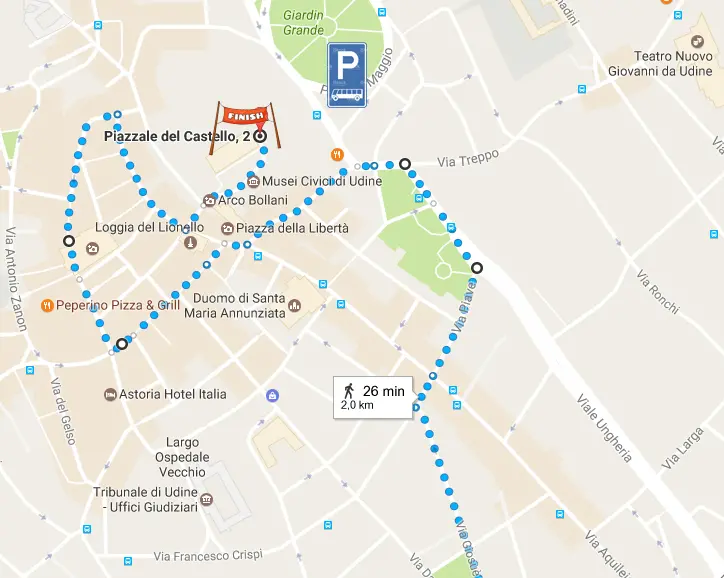 Svoltando a destra su piazza Patriarcato, poi, i partecipanti entreranno nel centro storico di Udine attraverso porta Manin, proseguendo lungo via Canciani fino all’arrivo in piazza San Giacomo.