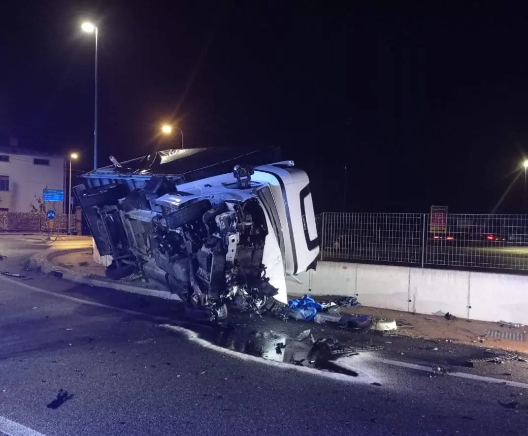 Furgone si ribalta mentre affronta una rotatoria, il conducente resta incastrato sotto il mezzo