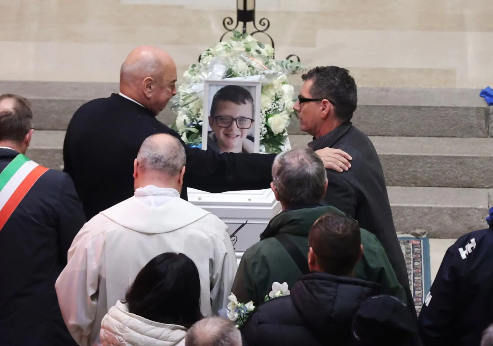 Alle 10 il feretro, una bara bianca con sopra una corona di fiori, è giunto con un carro funebre fino in piazza Marconi davanti al Duomo, poi è stato portato a braccia all'interno, dove c'era già una folla di persone ad attenderlo. Tra queste, il padre del piccolo, Paolo.