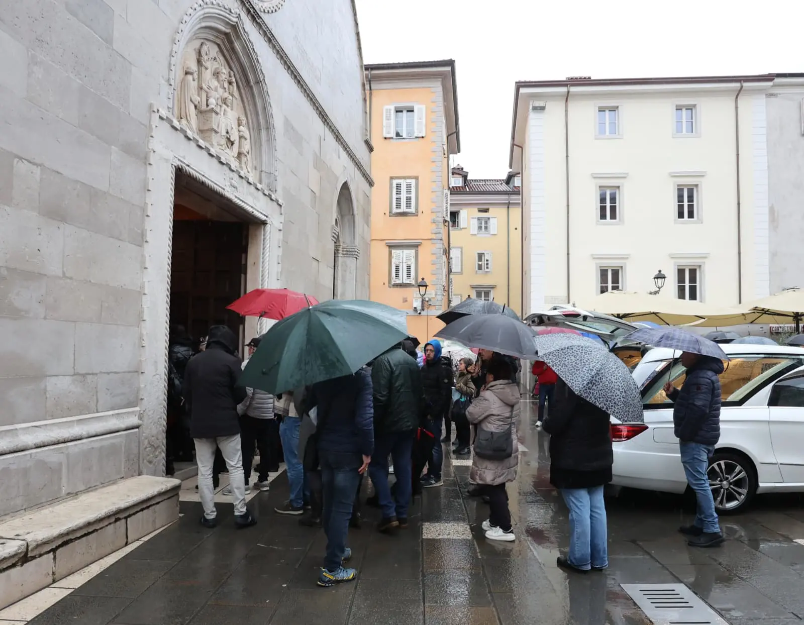 Anche all'esterno, nonostante la pioggia battente, tanti i cittadini che sono accorsi per seguire le esequie ascoltando l’omelia dagli autoparlanti. Fra le autorità presenti, i sindaci di Muggia e Trieste, Polidori e Dipiazza, e il presidente della Regione Fedriga.