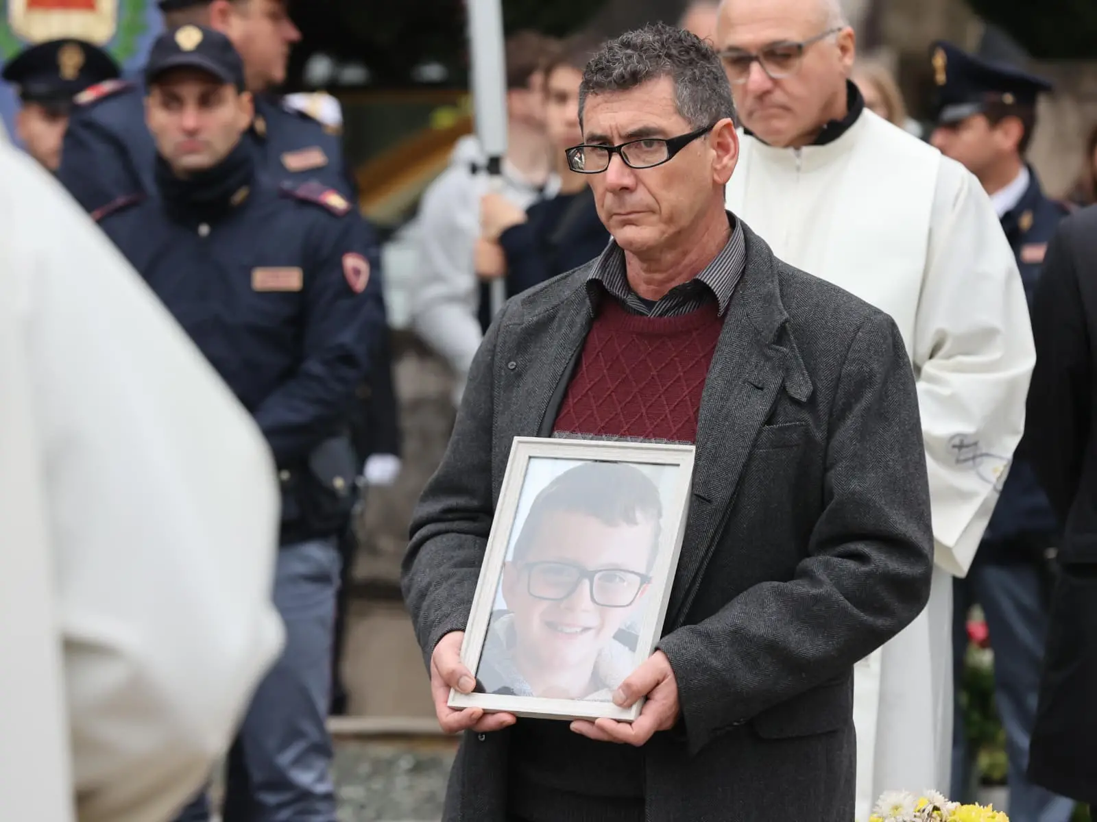 "Ho fatto di tutto fino alla fine", ha sussurrato il papà, stringendo la foto del figlio.L'omelia di don Destradi: "Un pugno nello stomaco che ti lascia senza fiato"