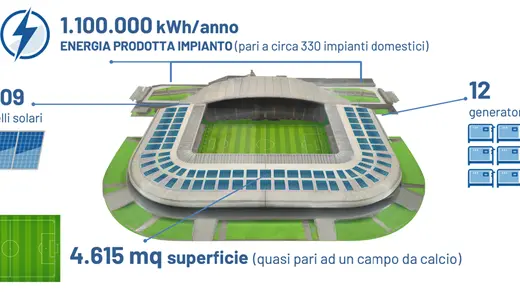 Il progetto, che prevede oltre 2.400 pannelli solari di ultima generazione, renderà lo stadio di Udine una delle più evolute strutture sportive in Europa, anche in termini di riduzione delle emissioni