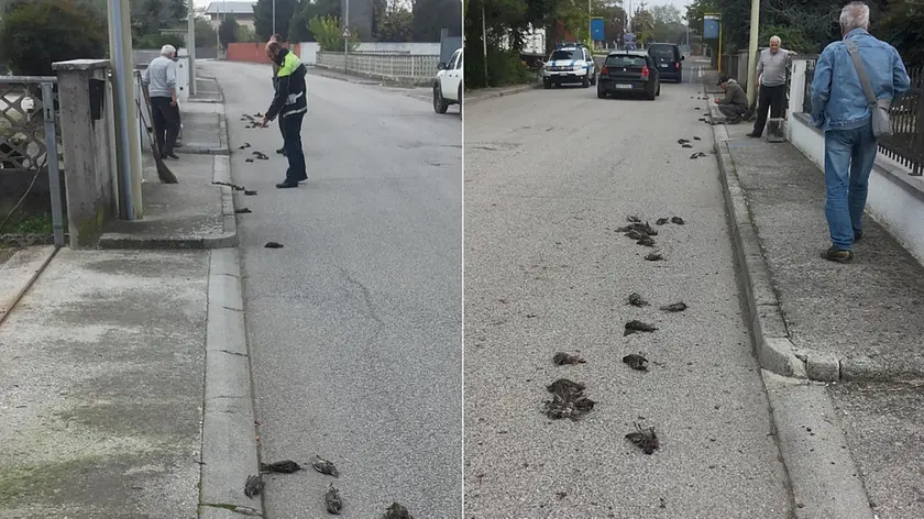 SAN GIOVANNI AL NATISONE. No, non era una scena del famoso film di Hitchcock “Gli uccelli”, ma la quantità di volatili, un centinaio, che prima svolazzavano sulle case e sugli alberi, e che senza alcun motivo apparente sono improvvisamente precipitati sulla strada, rimanendo esanimi sull’asfalto, ha riportato l'immaginario collettivo a quella pellicola destando nel contempo stupore, curiosità e, soprattutto, interrogativi tra coloro che, increduli, hanno assistito alla singoare scena.