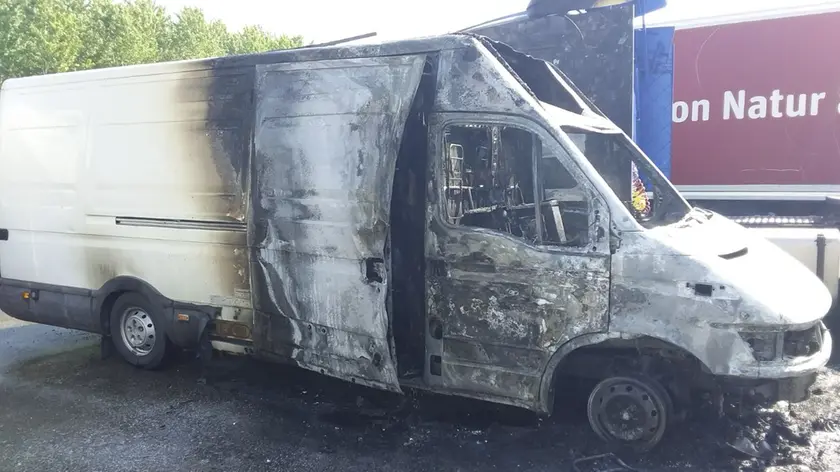 Un furgone frigo, probabilmente a causa di un problema elettrico, ha preso fuoco ed è stato completamente distrutto. Le fiamme hanno raggiunto rapidamente anche un secondo mezzo, un trattore stradale, parcheggiato poco distante.