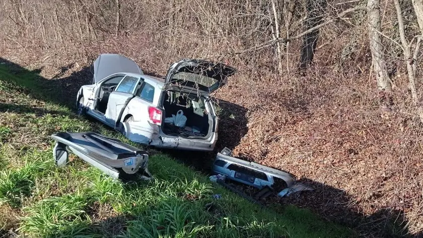 Per cause in corso di accertamento, due autovetture si sono scontrate lungo il rettilineo. A seguito dell’impatto, uno dei mezzi è finito fuori dalla carreggiata, terminando la propria corsa nel fosso a bordo strada.