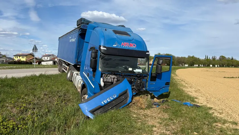 Perde il controllo del Tir e finisce fuori strada a Sesto al Reghena: illeso