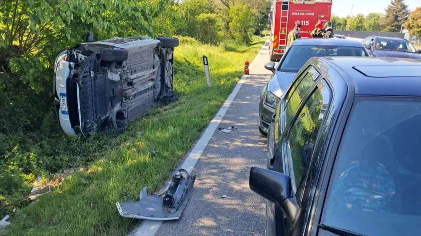 Incidente tra Pozzuolo e Mortegliano: tre auto coinvolte, un veicolo si ribalta