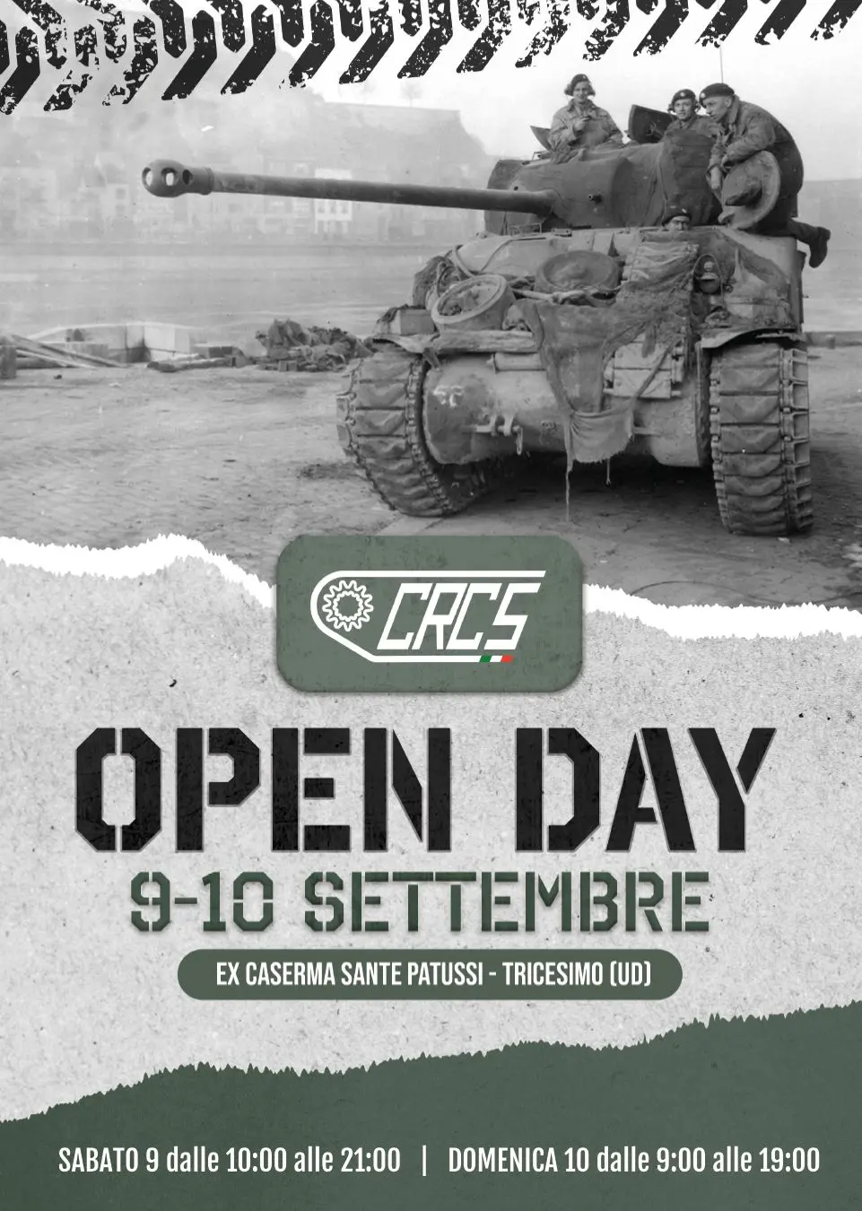 TRICESIMO. Torna sabato 9 e domenica 10 settembre si ripropone l’appuntamento con la manifestazione “Open Day”, in programma dalle 9 alle 19 negli spazi dell'ex caserma Sante Patussi di Tricesimo, sede operativa dell'Associazione cingoli e ruote per conoscere la storia Aps (Crcs Aps).