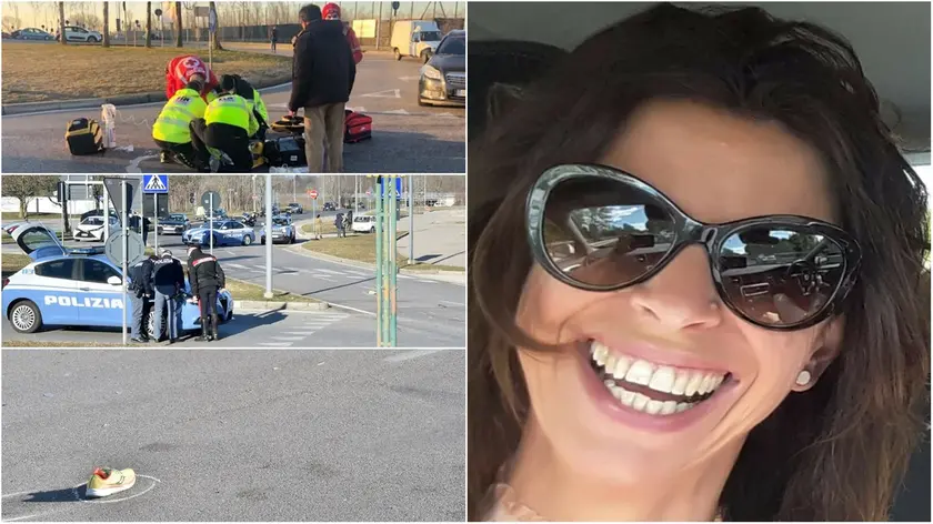 Alcune immagini dell'incidente nei pressi dello stadio Friuli e, a lato, la vittima: aveva 49 anni