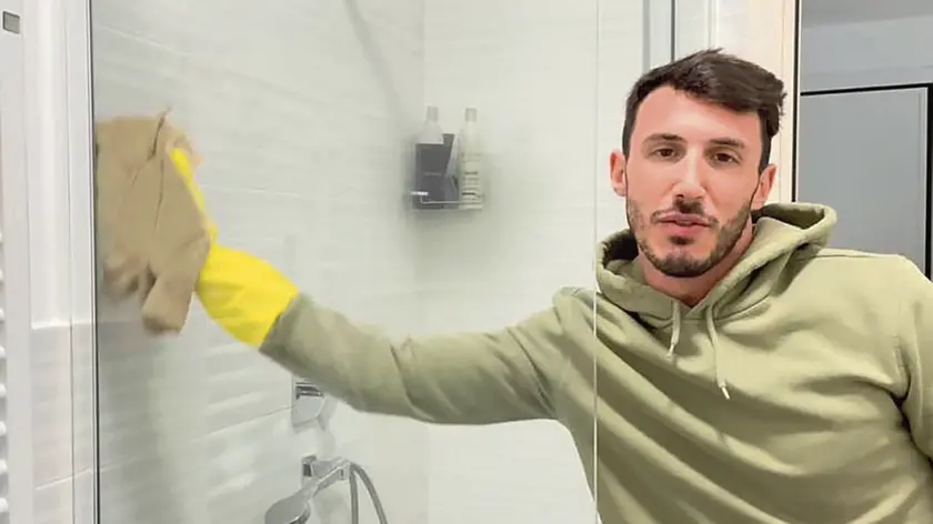 Mattia Alessio in un fermo-immagine dei video che pubblica sui social network in cui spiega come sbrigare le pulizie di casa