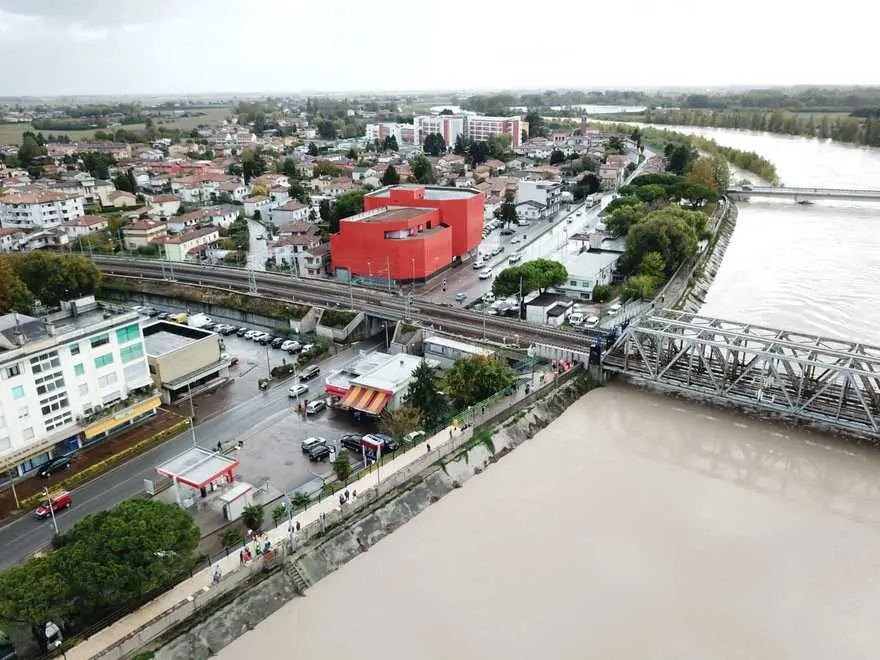 La piena del Tagliamento vista dal drone a Latisana. Danni alle spiagge e strutture di Lignano