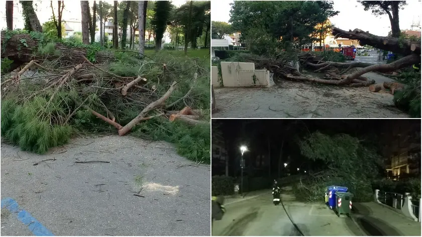 Intervento dei vigili del fuoco volontari di Lignano, nella notte tra giovedì 25 e venerdì 26 maggio, in via Carinzia, nella località balneare friulana, dove un grosso pino si è spezzato e cadendo ha colpito la recinzione di un'abitazione che confina con l'hotel Eros e anche una colonnina del gas che si trovava nel cortile della casa causando una perdita di metano.