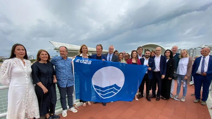 LIGNANO. Cerimonia, alla Terrazza a mare di Lignano, di consegna della 34esima Bandiera Blu, assegnata alle darsene del comprensorio turistico di Lignano Sabbiadoro e di Aprilia Marittima lo scorso 12 maggio a Roma.