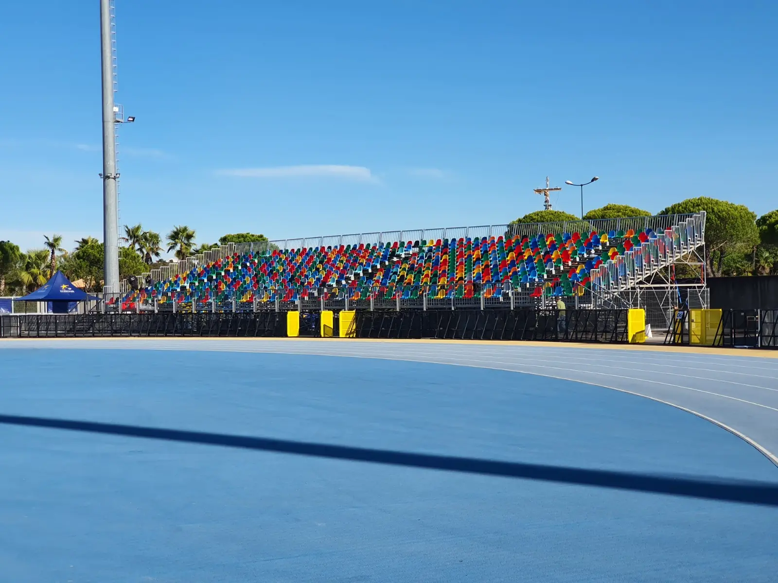 Nel particolare, tra le lavorazioni eseguite spiccano la creazione di zone pre-filtro (sia sul parcheggio antistante all’impianto sportivo sia lungo via della Vigna), il posizionamento di dodici tornelli per i molteplici accessi e di una tribuna scoperta prefabbricata metallica da 800 posti, oltre che il riposizionamento dei seggiolini su tutte le tribune e sulle gradinate. In più, sono state allestite delle nuove panchine a bordo campo e un nuovo impianto d’illuminazione con torri faro e di video-sorveglianza (sia interno che esterno su tutte le vie d’accesso allo stadio). È stata, inoltre, completata la riasfaltatura di via della Vigna, con il rialzamento di tutti i passi carrai e passi pedonali, e l’installazione di tre piazzole per i bagni prefabbricati.