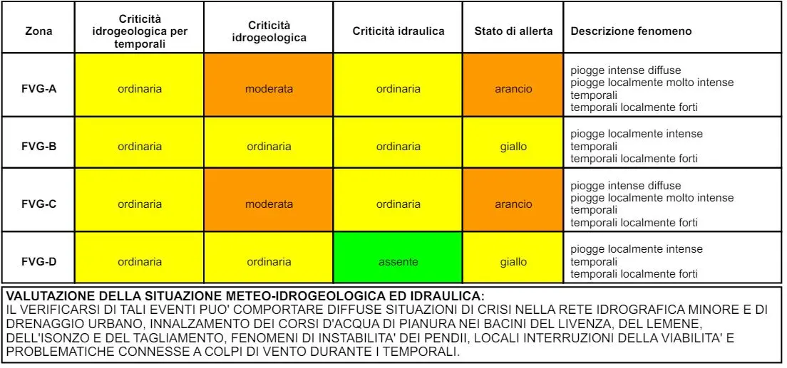 Una depressione atlantica si avvicinerà da ovest, attivando un flusso di correnti meridionali umide e instabili, che interesseranno la regione tutta la giornata di giovedì, quando le previsioni indicano nella notte e al mattino possibili piogge stazionarie anche temporalesche, intense o molto intense, specie su pianura pordenonese, udinese e Prealpi Carniche.