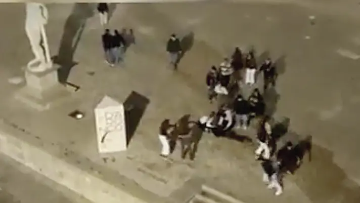 Un’immagine della maxi rissa di mercoledì in piazza Libertà a Udine