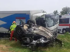 Scaraventato fuori dall'abitacolo dell'auto dopo lo scontro con due camion: muore a 43 anni