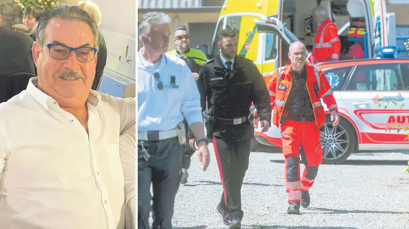 La vittima, Ivo Bellotto di 68 anni. A destra i soccorsi sul luogo dell'incidente a Fiume Veneto