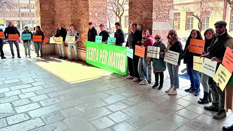 Amici e conoscenti di Matteo Pittana fuori dal tribunale di Udine