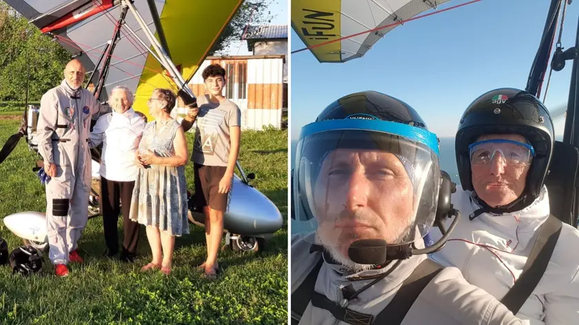 È stato il regalo di compleanno per la signora Zaccolo, di Precenicco, che ha sorvolato la laguna e la costa: «Paura? Neanche per sogno. L’unico pericolo che si corre facendo questo tipo di esperienza è quello di innamorarsi del pilota»