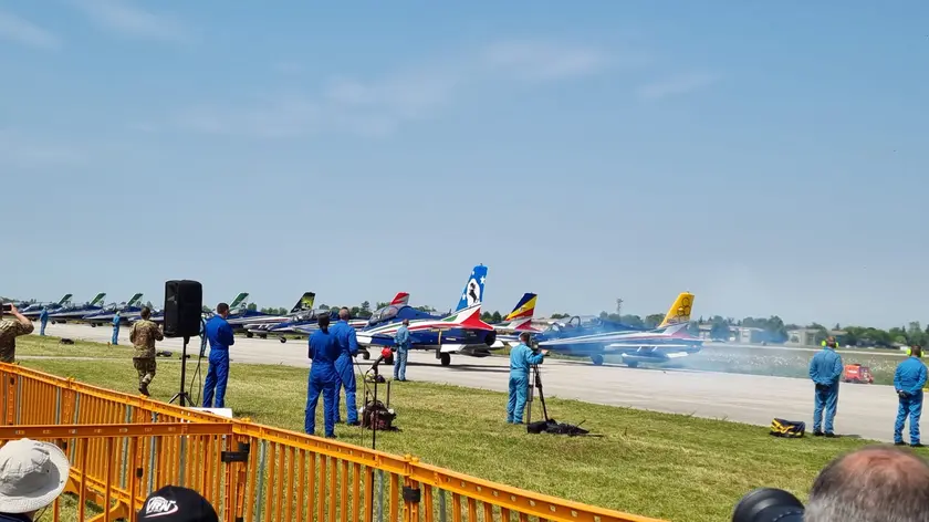 CODROIPO. Le Frecce tricolori tornano a volare alla base davanti al "loro" pubblico. Mille ospiti per l'ultimo volo di addestramento del 2021. Quello