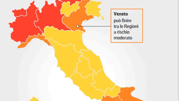 Ecco, se questo è il primo capitolo, “Misure nazionali” del nuovo editto del premier, il secondo capitolo è «l’Italia divisa in tre fasce: zone rosse, arancioni e verdi». Come a dire, regioni di serie A e di serie B. Determina l’ingresso in una delle tre fasce di rischio il profilo di ciascuna regione fornito dal monitoraggio settimanale dell’ Iss, basato su 21 indicatori: dall’indice di contagio (l’Rt) al tasso di occupazione dei posti letto, alla tenuta del contact tracing.